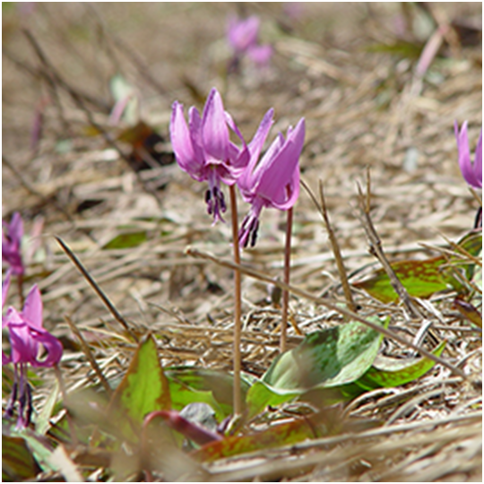 - カタクリ、キクザキイチゲ、フクジュソウ、 コシノコバイモ、ミスミソウ、ミズバショウ、ザゼンソウなど